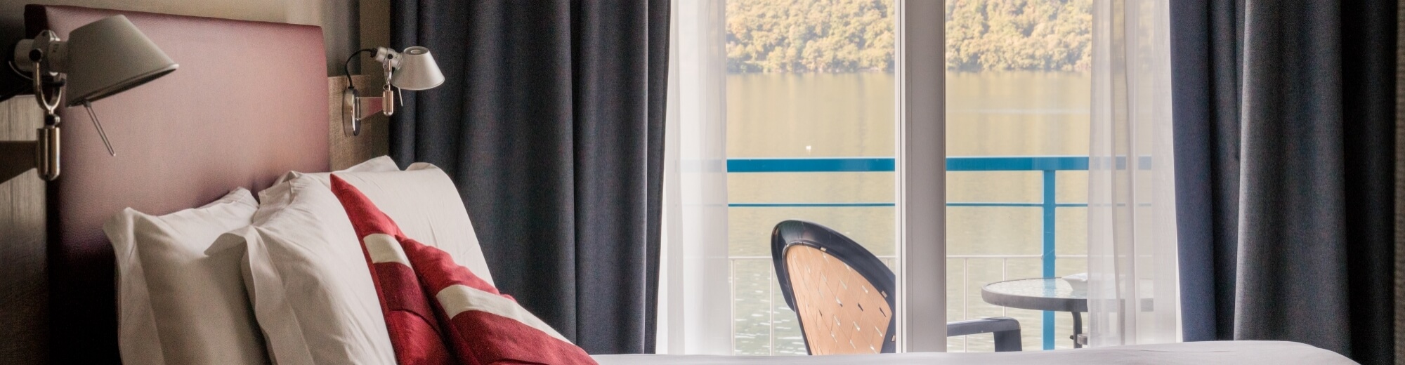 Les chambres avec vue sur le lac, meublées dans un style moderne, jouissent d'une vue magnifique sur le lac, sont équipées d'un balcon, salle de bain privée avec douche ou baignoire, air conditionné, TV satellite, Wi.Fi, telephone, bouilloire pour le thé et le café et coffre fort.